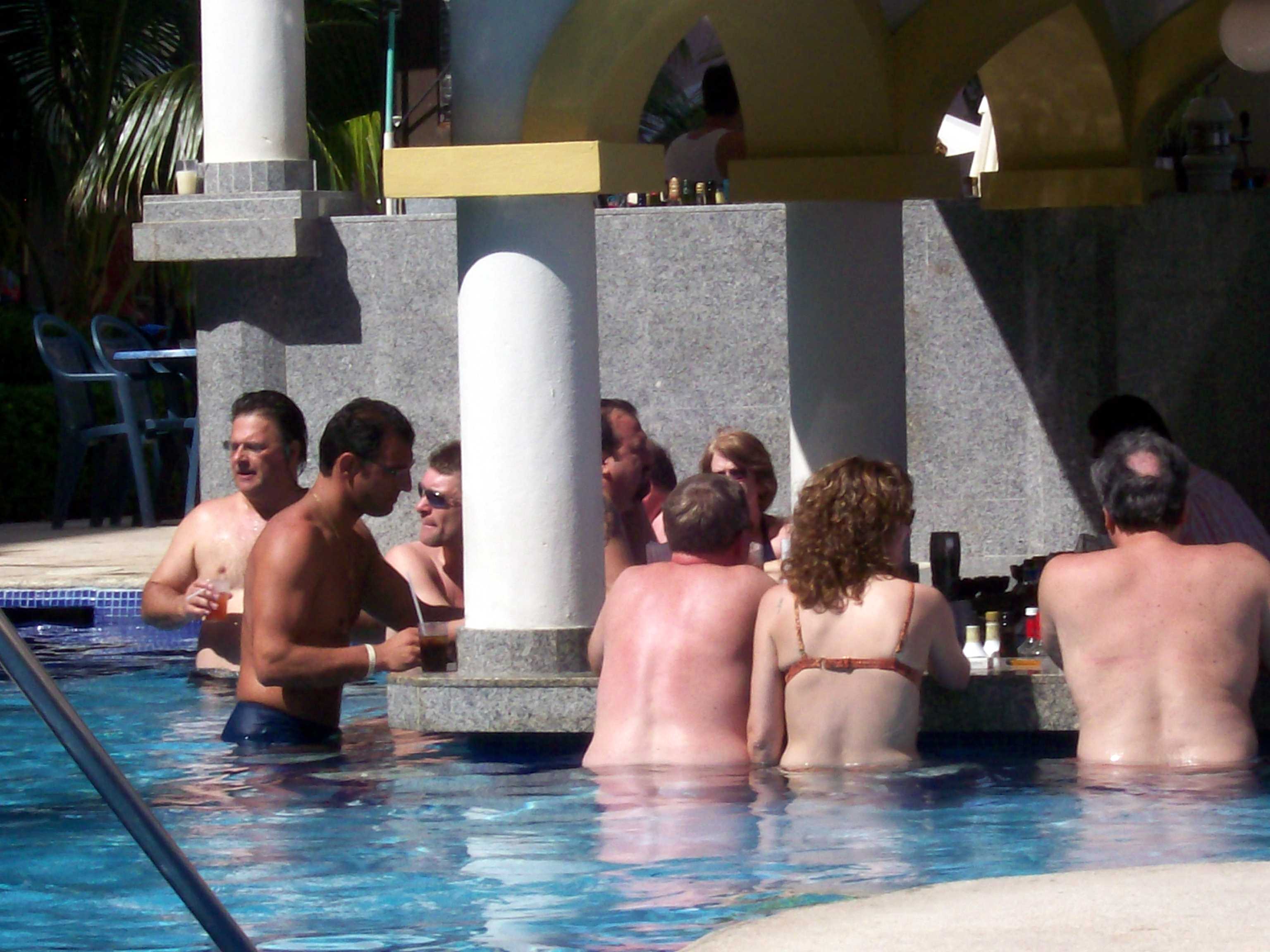 Pool people don’t have to worry about nasty things in the water like tar balls, crabs or sharp stones. They don’t have to worry about waves or being dunked unexpectedly. They certainly don’t have to turn out cupfulls of sand from their swimsuits after a day frolicking in the waves. No – they have things pretty covered. The only concerns are getting the chlorine out of your swimsuit and those guys who have been sitting at the pool bar the WHOLE day drinking untold numbers of beers without moving. Now what the hell? Do they have extra bladders tucked away somewhere handy?