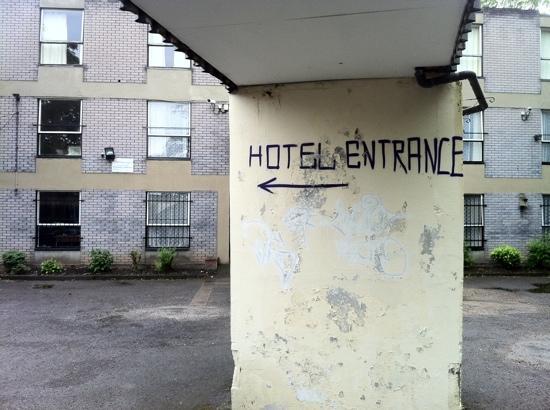 The last thing you want to see when you drive up your hotel is something like this….