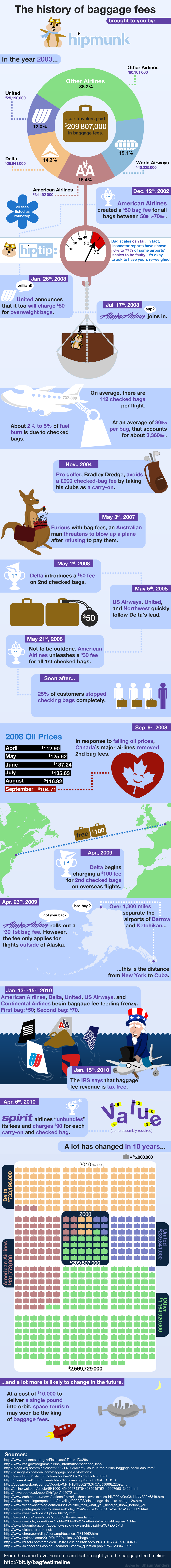 But now that I have your attention – what did you pay for your checked bag the last time you travelled? This handy chart is a great little overview of the checked bag flourishing industry.