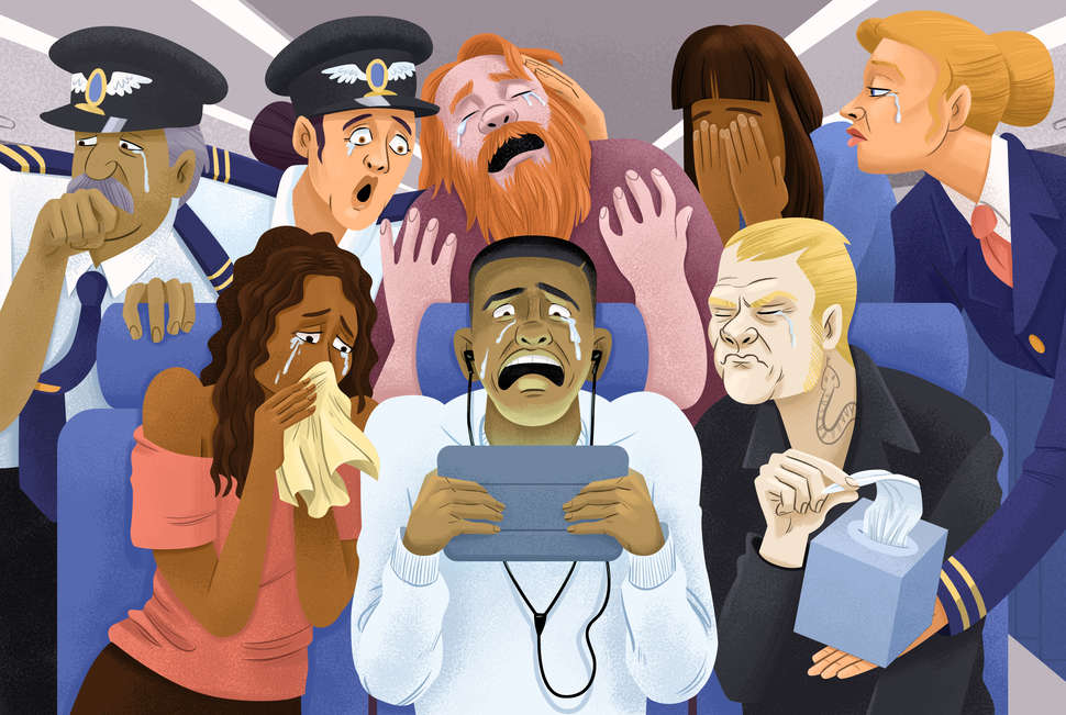 “A 2017 survey of passengers commissioned by London’s Gatwick Airport found that 15% of men and 6% of women are more likely to cry while watching a film on a flight than if they were to watch that movie elsewhere.