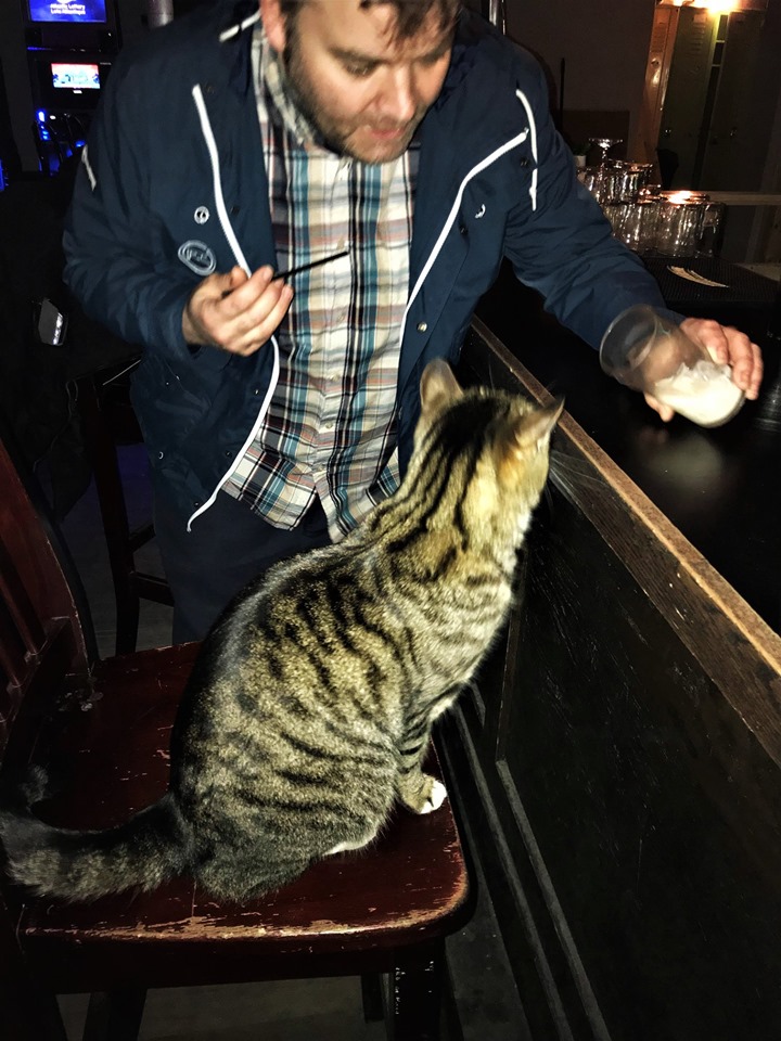 We met at the bar – in fact it was the bar at O’Reilly’s to be exact. The lovely little barmaid stooped down behind her and picked up a quite large cat who lay docilely in her arms while she carried him to the front door of the pub and told him to go home. No one was perturbed about this. You see the cat is called Sid and is quite the roamer along George Street. He likes hanging out in bars and seems to extremely sociable. He even has his own facebook page called The Adventures of Sid the Cat.