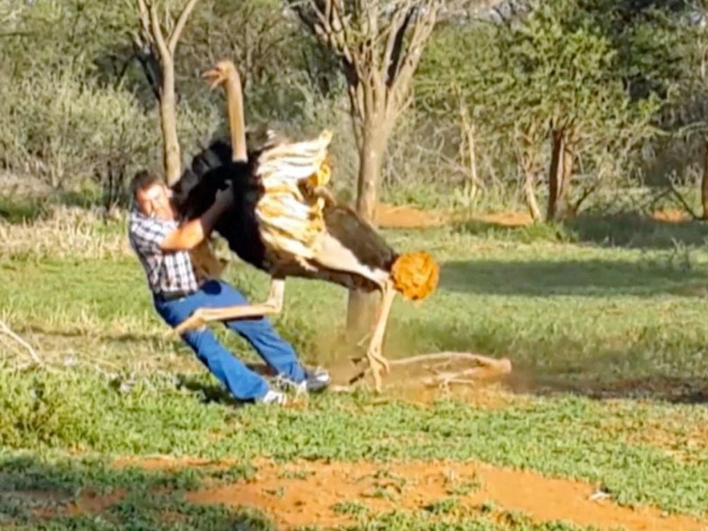” Ostriches can be found in the wild, on safaris, or on ostrich farms. But regardless of where you find them, treat them with the utmost caution. Although they do not prey on humans, they have been known to injure and kill when provoked. Extremely fast on foot, they can deliver mortal blows by the sheer force of their legs, never mind the lethally sharp talons at their toes. The best thing you can do is steer clear of them, keep your distance, if you don’t bother them. It is unlikely they will bother you. Failing that, ducking for cover and hiding works best. As a last resort, you may even have to fight them. “
