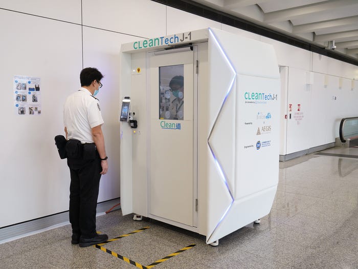 But hey, if it does the job then it’s good with me. Similar ideas are being used in other spots around the world – maybe not as sophisticated as this but generally with the idea of stepping through a portal that will disinfect the person passing through.