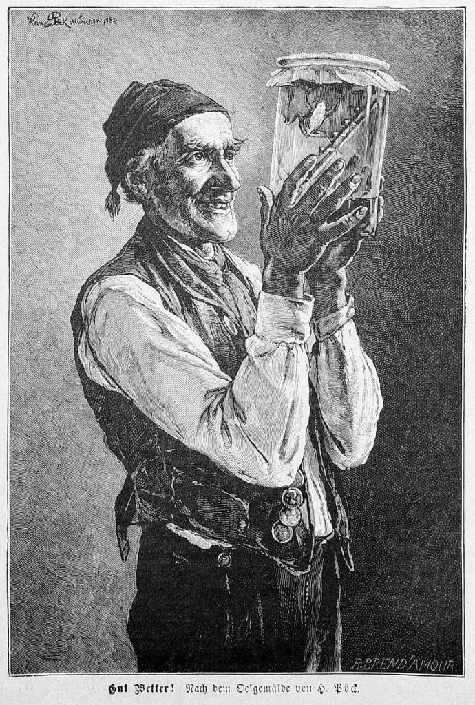 Now there was a tradition in old Germany where frogs were believed to be able to forecast the weather. They noticed that frogs would climb up the trees or vegetation in good weather and took that as a sign that it was going to get warm. They were so convinced about this that they started to put these poor frogs in glass jars equipped with a small ladder inside. This was so they could be observed – kind of like a froggy barometer. They were known as weather frogs – or in the German term Wetterfrosch. Today that name is a derogatory term for meteorologists suggesting that their forecast cannot be trusted.