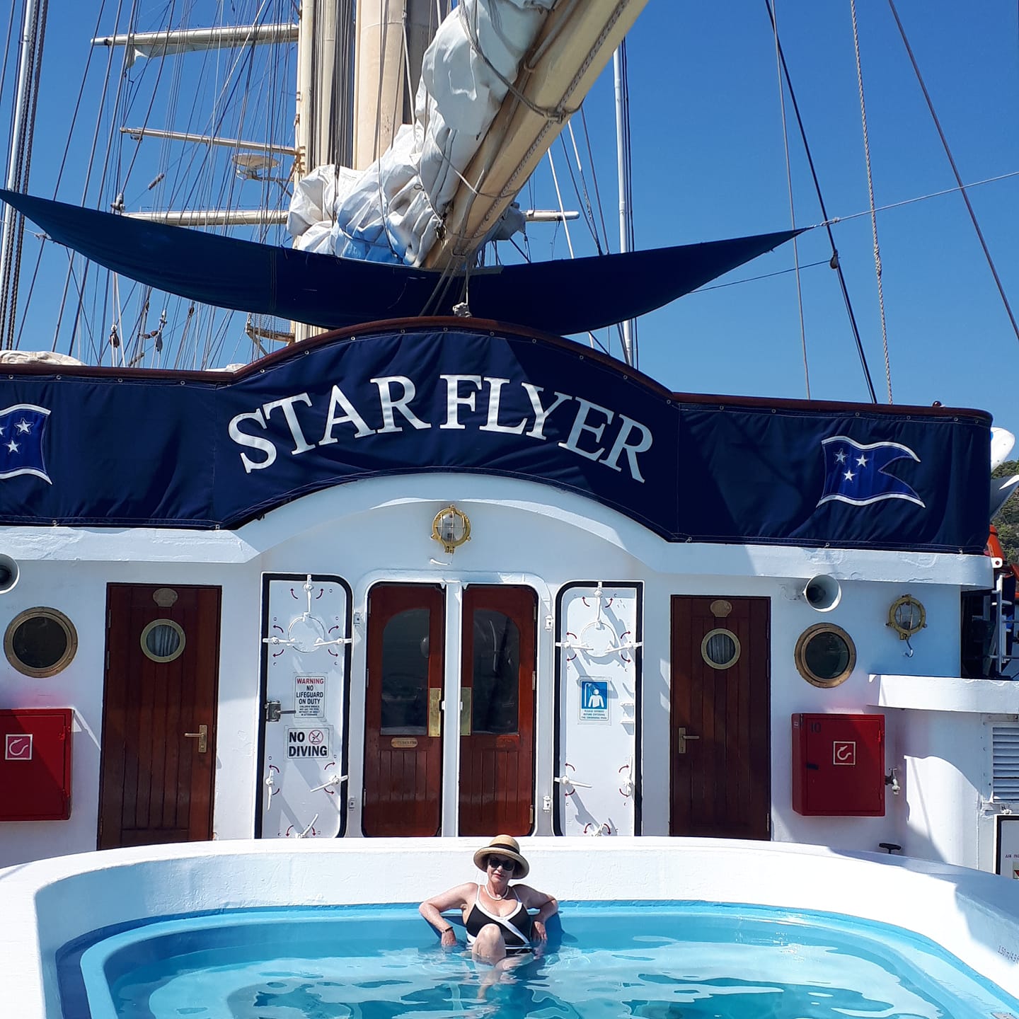 2. Lesley, is that bathing beauty going to be sitting in the pool on our trip next year on that yacht? Enjoy, stay well and post only positive reports so that my wife feels safe on that trip.
