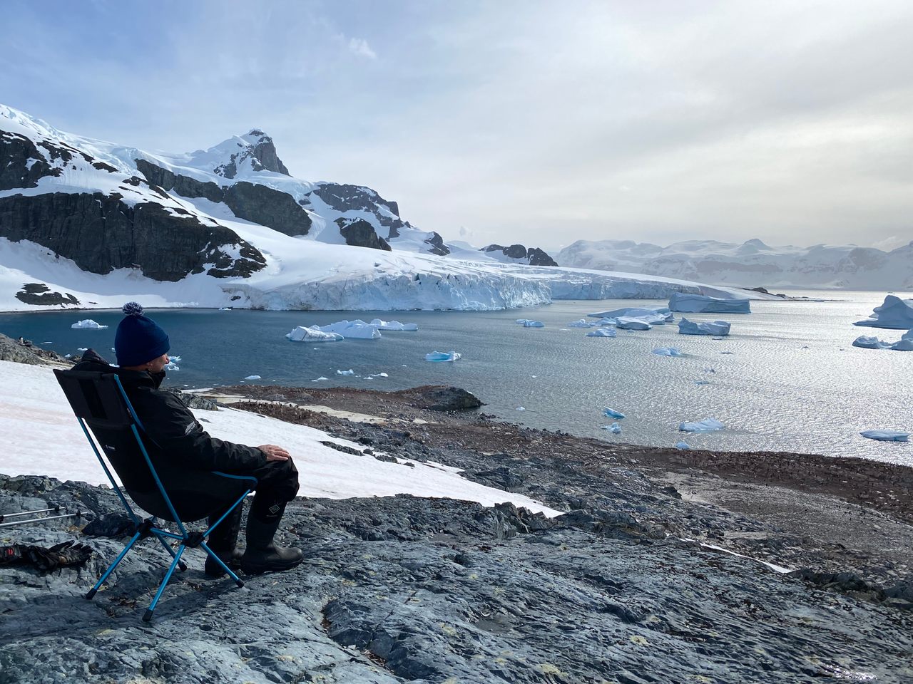 Robert “Robby” Silk, 49, was participating in the sport of competitive chair-sitting, a still-evolving endurance activity Silk has pioneered that involves sitting in extreme environments, from sun-up to sundown without any sort of time pieces or electronic devices. “The idea,” says Silk, “is to really just be, and not do much of anything.” On June 21, 2020, Silk completed his longest sit to date: a 14-hour, 27-minute stretch in California’s Joshua Tree National Park. Before Antarctica, this budding trend-setter had only sat himself in desert settings, including Sedona, Arizona, and the state’s McDowell Mountain Regional Park in North Scottsdale. (The Antarctic continent is the largest desert on earth, but many of its surrounding islands are considered tundra.)